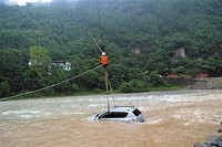 經核實,此次山洪造成13輛小車和3輛摩托車沖入河中,其中被沖走的一輛小車中有5人(3人被救,1人死亡,1人失蹤)。