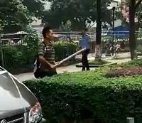 目擊者說,放棄攻擊玻璃門內女子后,背包男子并未放棄襲擊路人。他舉起木棍,又擊中一名中年女子,對方倒在路邊綠化叢中。
