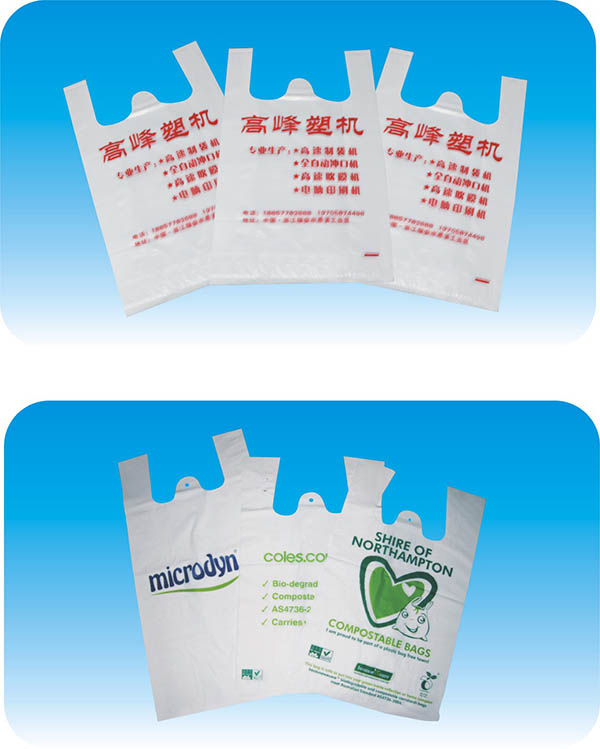 本机以HDPE、LDPE简膜为原料可生产印刷、本色、背心袋,采用PLC控制、双伺服(步进)马达定长、液晶触摸屏实时显示,从送料、封底、切断、冲口、输送一次性完成,自动化程度高,经济效益好。